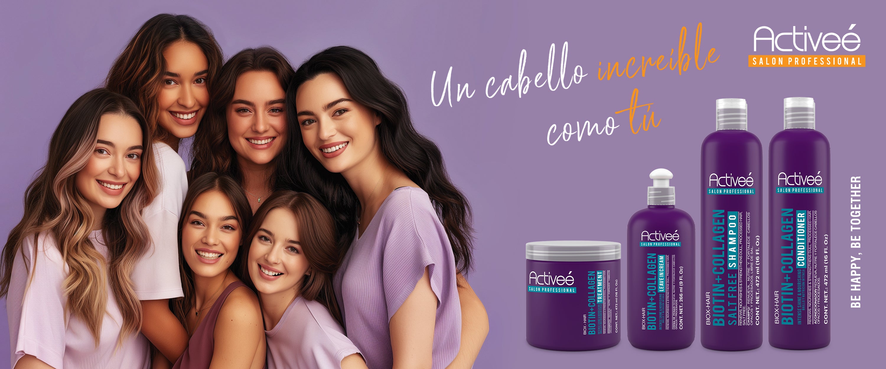 Crema para Peinar Activee Professional Biotin+Colagena Renueva Nutre y Fortalece Cabellos Opacos y Procesados Libre de Sal
